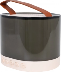Dzięki Bluetooth 5.0 połączenie jest stabilne i kompatybilne z telefonem, tabletem, TV i komputerem. Dostępne są także inne opcje odtwarzania: gniazdo karty TF (do 64 GB), 3,5 mm AUX oraz ładowanie USB‑C. Wbudowany akumulator zapewnia 4–5 godzin odtwarzania i wskaźnik poziomu naładowania. Wytrzymałe wykonanie z ochroną IPX3 poradzi sobie z lekkim deszczem – idealne na imprezy, pikniki lub domowe karaoke.