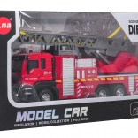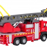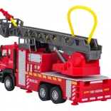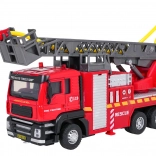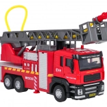 Interaktywny wóz strażacki w skali 1:32 ucieszy małych ratowników od 3 lat. Oferuje efekty świetlne i dźwiękowe, działającą pompkę wodną, wysuwane i obrotowe drabiny z koszem oraz napęd na naciąg (Pull Back). Wysoka jakość wykonania, gumowe opony i baterie w zestawie dla natychmiastowej zabawy.