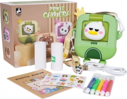 Rozwesel małych fotografów dziecięcym aparatem, który po zrobieniu zdjęcia natychmiast drukuje je na papierze termicznym. W zestawie bogaty pakiet akcesoriów do kreatywnej zabawy: etui ochronne, 2 rolki papieru termicznego, kabel USB, smycz, fotoalbum, naklejki i kolorowe flamastry, dzięki którym można pokolorować wydrukowane czarno-białe zdjęcia. Aparat oferuje nagrywanie wideo, zabawne efekty oraz zapis na kartę (gniazdo karty), dlatego świetnie sprawdzi się jako prezent dla dzieci od 3 lat.