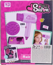 Zabawny zestaw fryzjerski na baterie ucieszy małe elegantki od 3 lat. Zawiera plastikowe akcesoria w praktycznym opakowaniu typu window box, idealny do zabawy w salon i rozwijania wyobraźni. Działa na 2× baterie AAA (nie są dołączone do zestawu). Lekka, bezpieczna i kreatywna zabawka do pokoju dziecięcego.