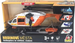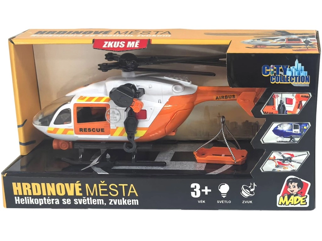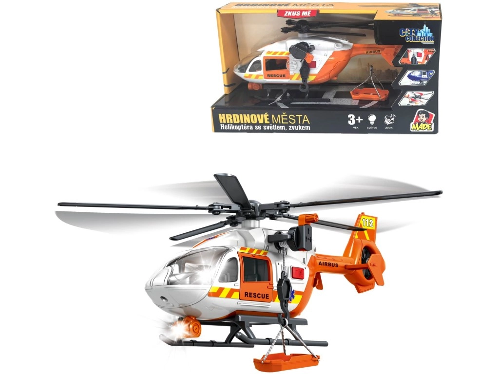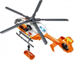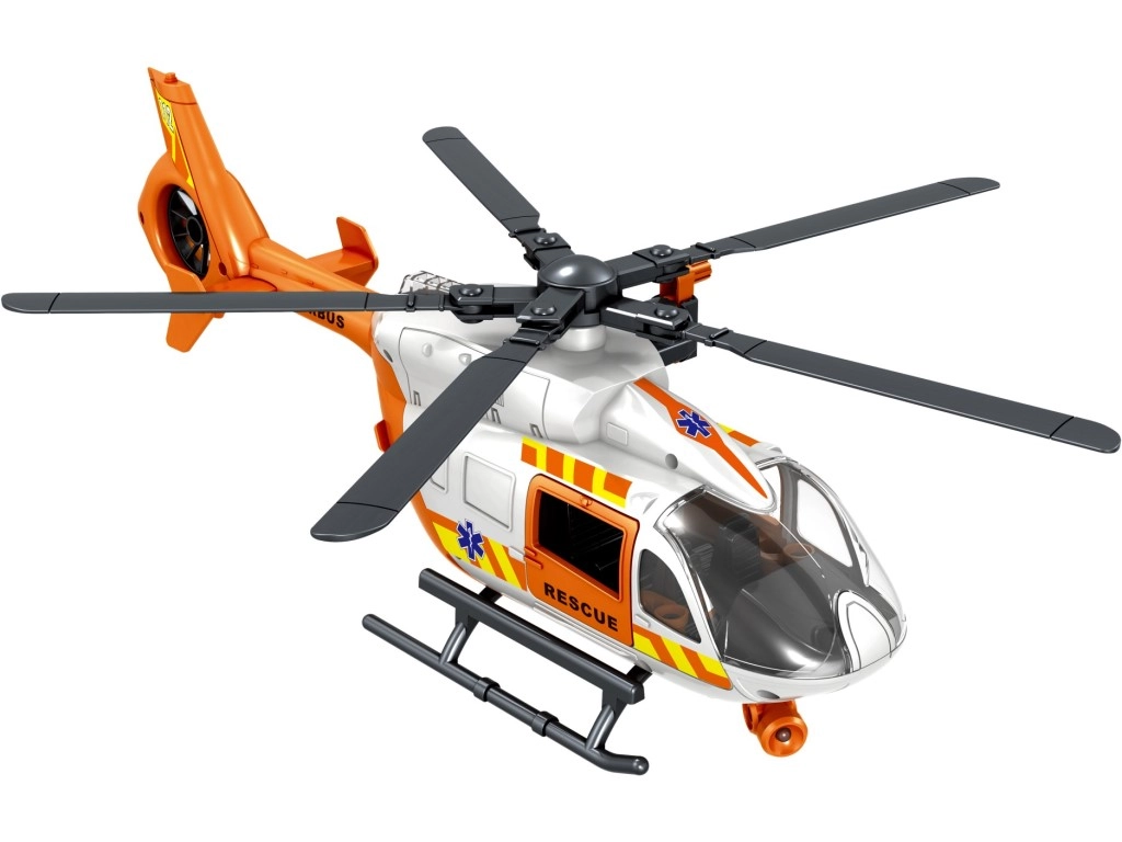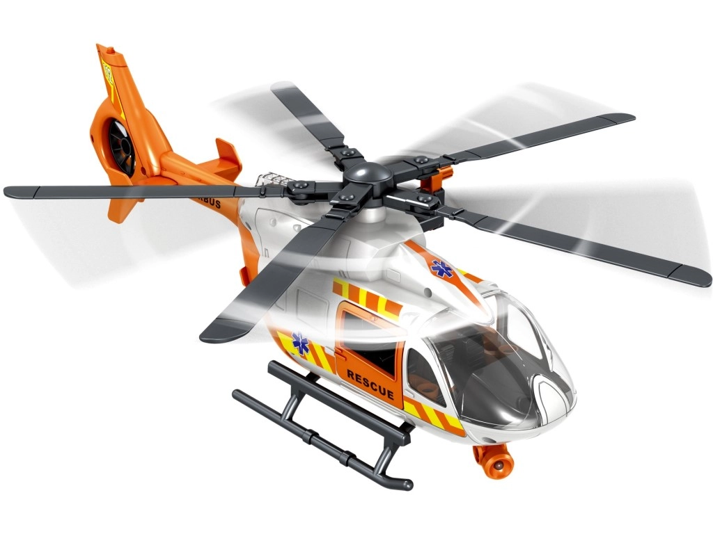 Ten szczegółowo wykonany ratunkowy śmigłowiec w biało‑pomarańczowej kolorystyce zapewnia dzieciom autentyczną zabawę. Dzięki obracającym się wirnikom, składanym płozom oraz funkcjonalnej wciągarce z koszem lub noszami dzieci łatwo odegrają prawdziwe akcje i transport poszkodowanych.