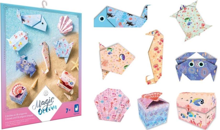 Odkryj zabawny zestaw do składania papieru z motywem oceanu, który ucieszy małych i dużych twórców. Dzięki kolorowym wzorom i dołączonym naklejkom dzieci rozwijają małą motorykę, trenują zręczność i cierpliwość oraz tworzą urocze morskie kształty i pudełeczka na prezenty.