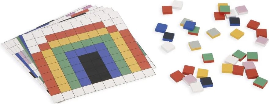 Duża liczba elementów pozwala tworzyć dziesiątki motywów, ćwiczyć rozpoznawanie kolorów, liczenie oraz małą motorykę podczas precyzyjnego układania w siatce.