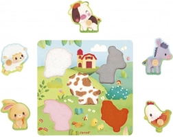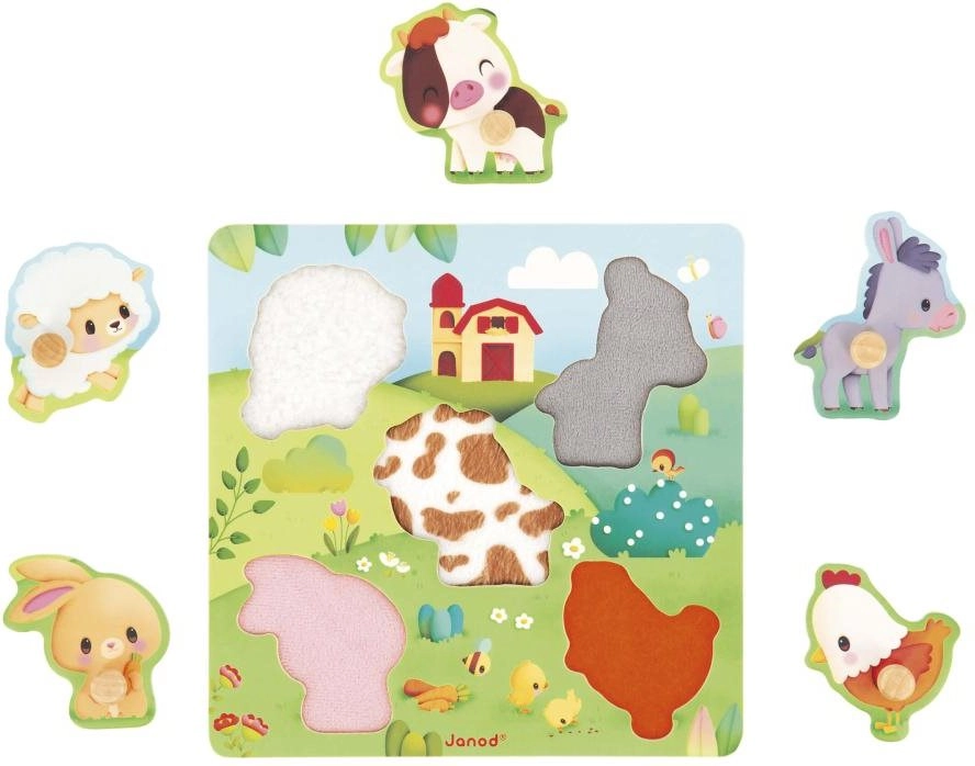 Odkryj zabawę połączoną z nauką dzięki drewnianej układance JANOD, która oferuje dzieciom doznania dotykowe dzięki przykładom sierści i skóry zwierząt. Rozwój małej motoryki, myślenia logicznego oraz rozpoznawania kształtów w jednym, angażującym produkcie z praktycznymi uchwytami ułatwiającymi manipulację.