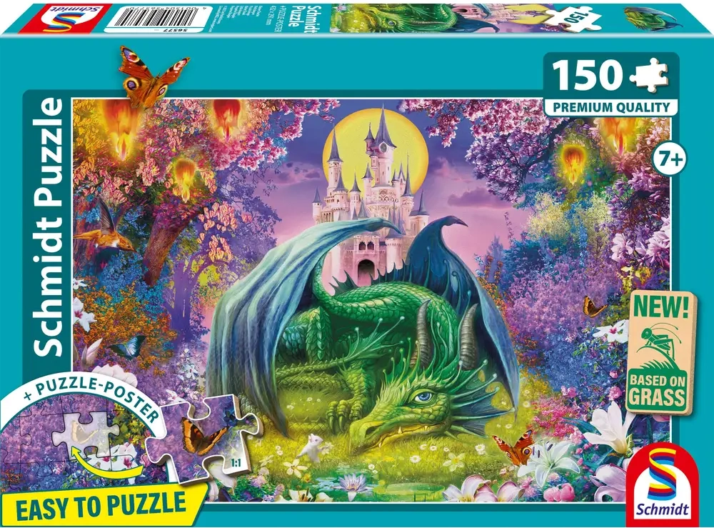 Odkryj magię układania z puzzlami SCHMIDT – Mały smok o 150 elementach. Idealne dla dzieci i początkujących, oferują wysoką jakość druku, precyzyjne wycięcia oraz końcowy wymiar ok. 43,2 × 29,1 cm.