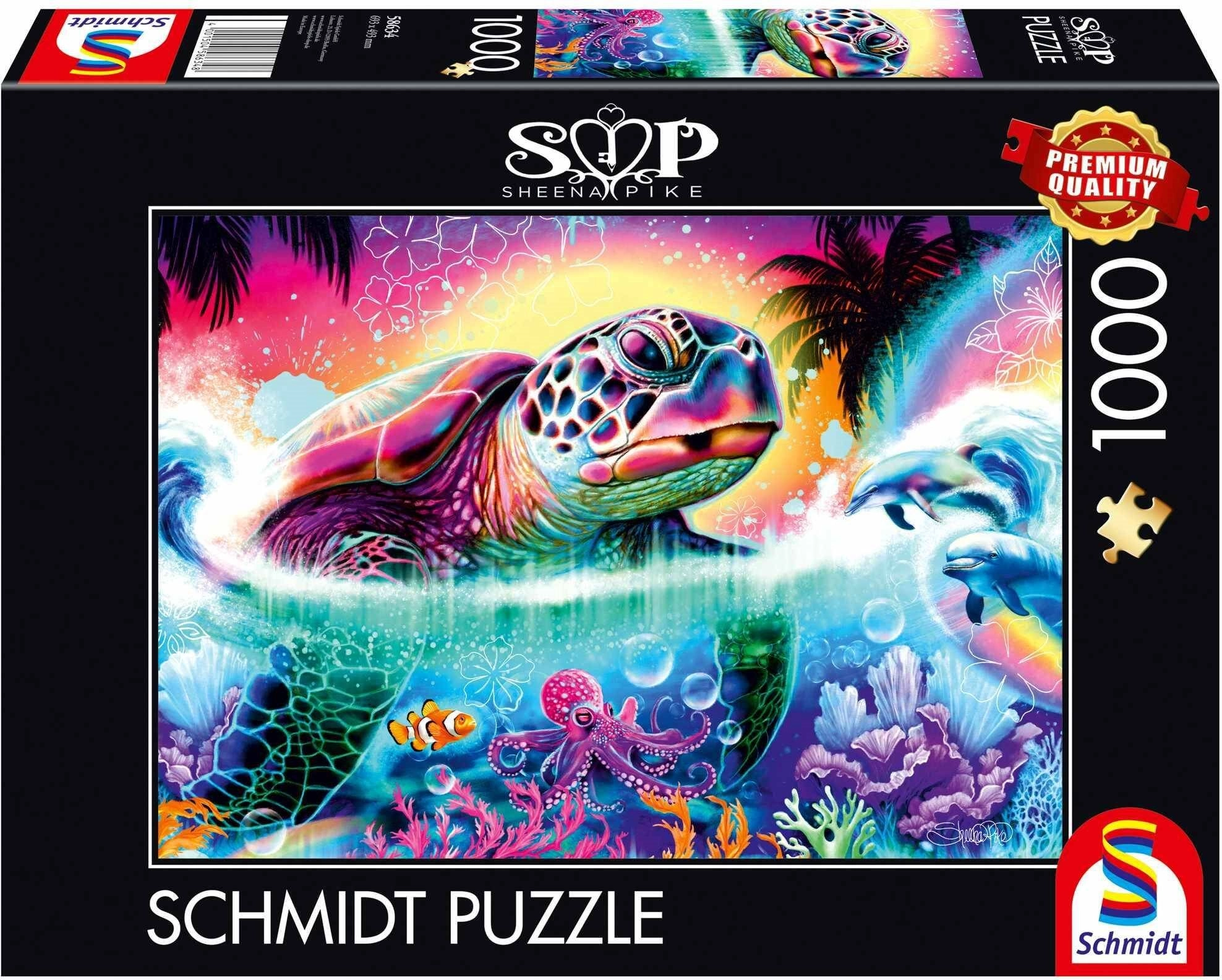 Ciesz się relaksem i wyzwaniem z wysokiej jakości puzzlami SCHMIDT. Motyw neonowego żółwia o 1000 elementach wyróżnia się nasyconymi kolorami i dopracowanymi detalami, zapewniając perfekcyjne wrażenia z układania. Gotowe puzzle mają wymiary ok. 69,3 × 49,3 cm.