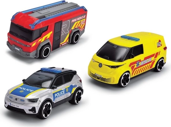 - 3 pojazdy w jednym opakowaniu – strażacki, policyjny i ratunkowy