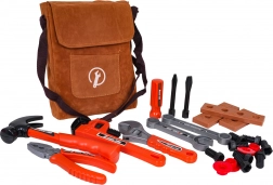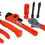 Młotek, szczypce, klucz nastawny, śrubokręt z bitami oraz klucz do rur wyglądają jak prawdziwe, ale są lekkie i bezpieczne dla dziecięcych rąk.
