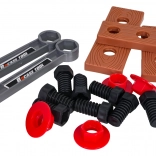Śruby, nakrętki i listwy z otworami pozwalają dzieciom łączyć elementy, testować konstrukcje oraz rozwijać koordynację i logiczne myślenie.