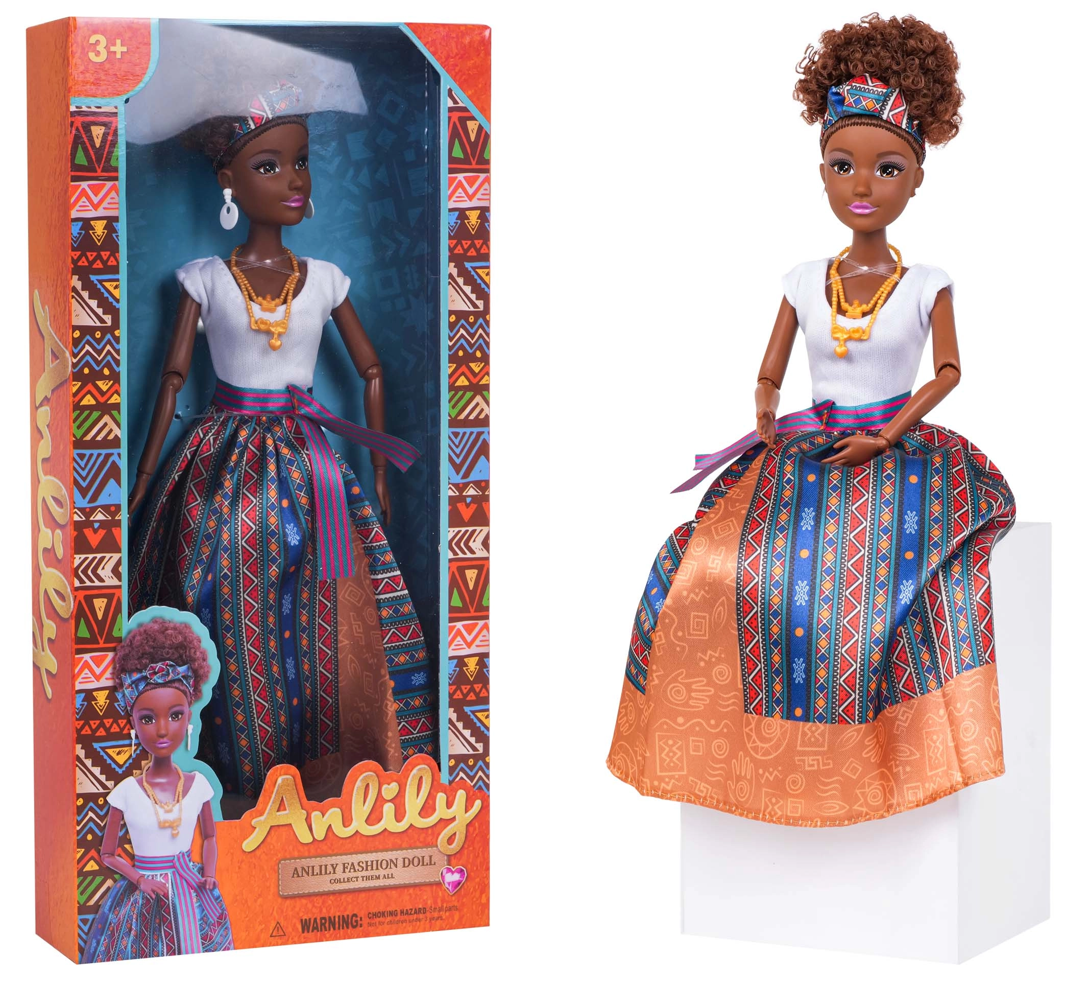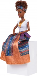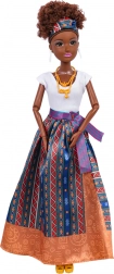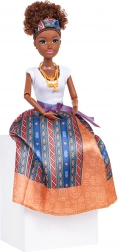 Biały top, długa kolorowa spódnica, pasująca opaska oraz biżuteria nadają lalce wyrazisty wygląd, który dzieci uwielbiają.