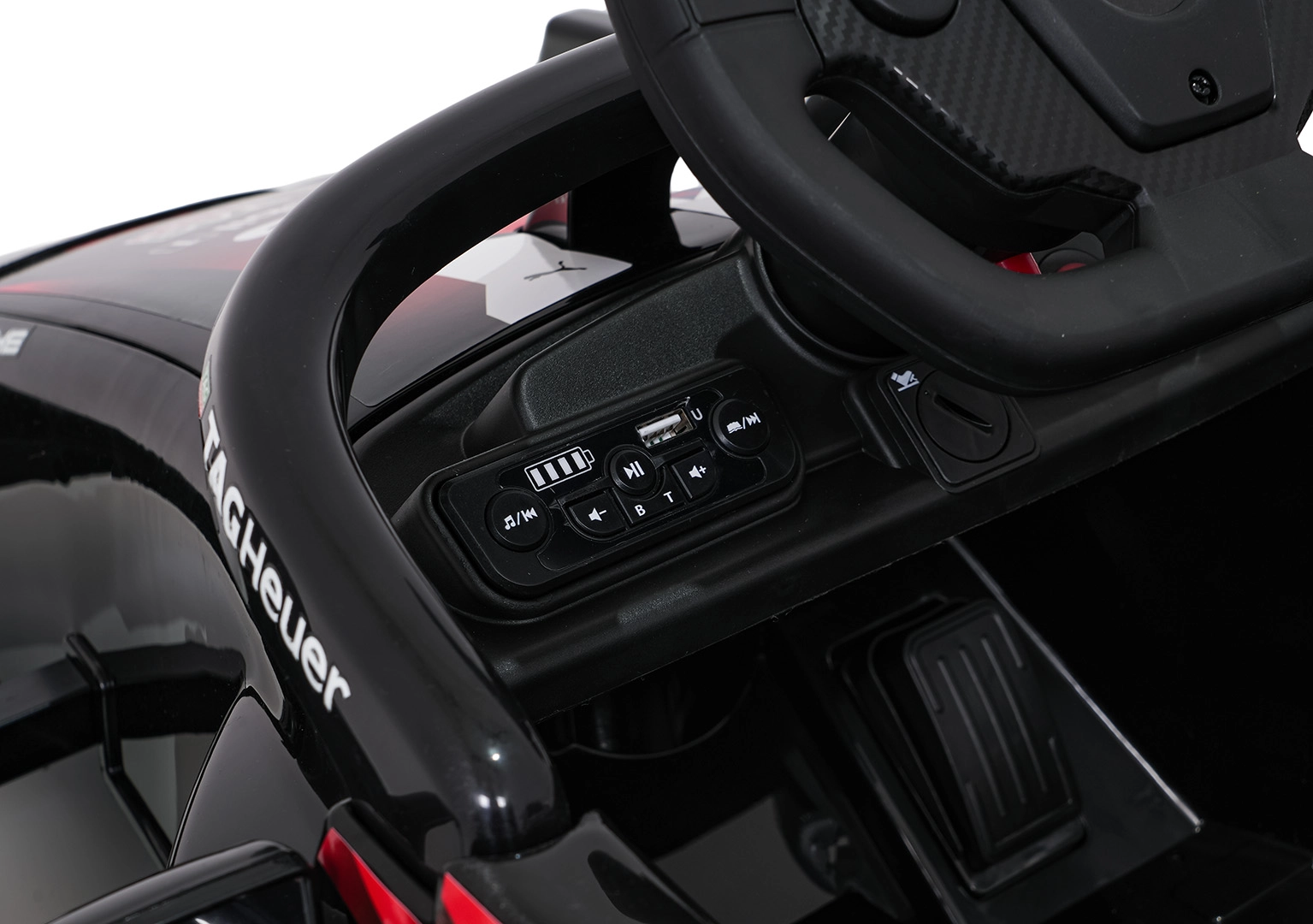 Rodzice docenią zdalne sterowanie 2,4 GHz z trzema prędkościami i awaryjnym przyciskiem Stop, który pozwala w każdej chwili przejąć kontrolę. Dzieci pokochają panel multimedialny z Bluetooth, USB i MP3, dźwiękami oraz klaksonem na kierownicy, a także wgrane melodie. Siedzisko z ekoskóry z pasami trzyma pewnie i wygodnie, dzięki czemu każda przejażdżka to przyjemność.