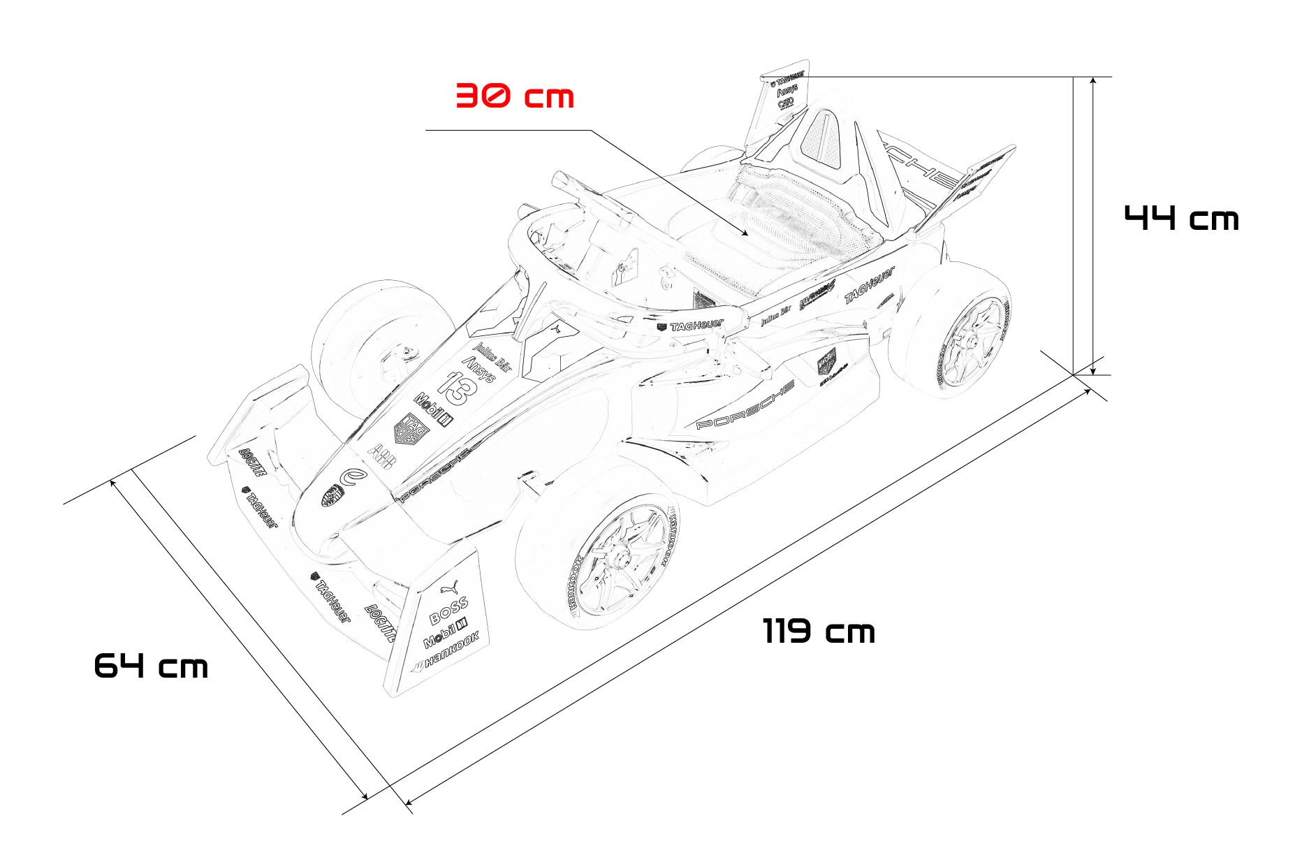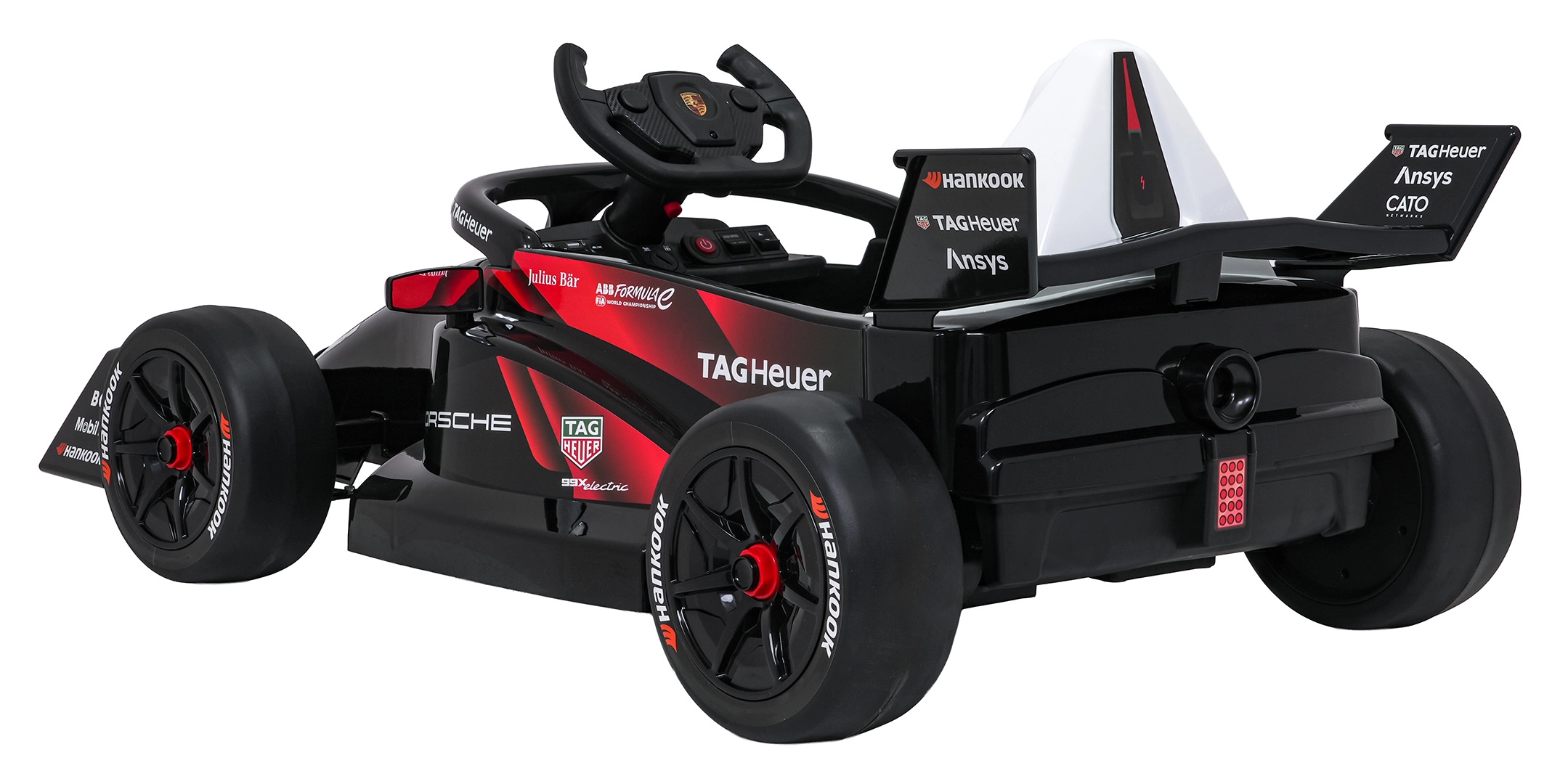 Autentyczne linie i grafiki inspirowane bolidem PORSCHE Formula E, szerokie skrzydła i sportowy kokpit dla doskonałych wrażeń z jazdy.