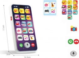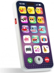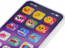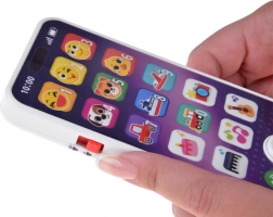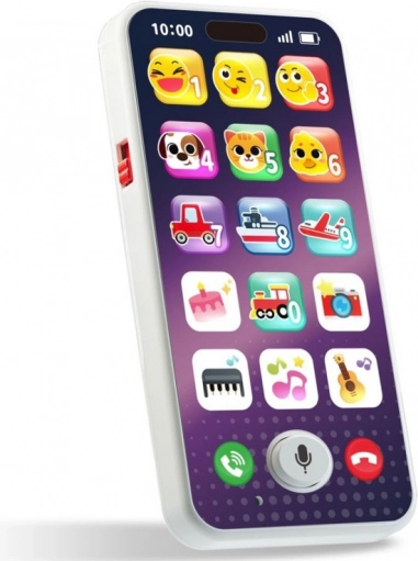 Kolorowy, interaktywny telefon dla najmłodszych naśladuje prawdziwy smartfon i oferuje mnóstwo zabawy oraz nauki. Dzięki dużym ikonom dziecko uczy się liczb, odgłosów zwierząt i dźwięków pojazdów, a także słucha melodii. Zabawka ma lekką i płaską konstrukcję, łatwo leży w małych rączkach i posiada regulację głośności dla komfortowej zabawy w domu i w podróży.