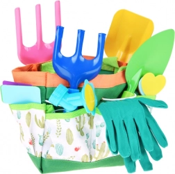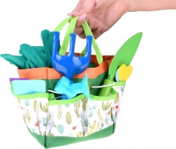 dziecięcy zestaw ogrodniczy z motywem kaktusów – narzędzia, fartuch, rękawiczki i organizer
