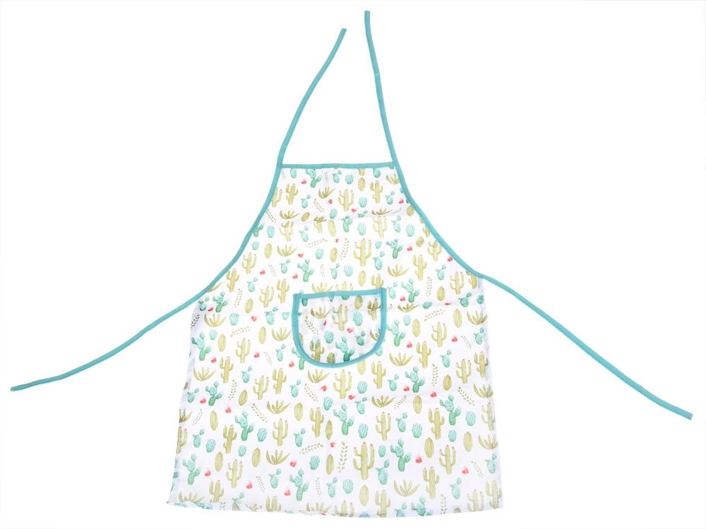 Fartuch z kieszenią, wygodne rękawiczki i osłony chronią ubranie oraz dłonie podczas tworzenia i ogrodniczych prac. Stylowy wzór w kaktusy zachwyci dzieci.