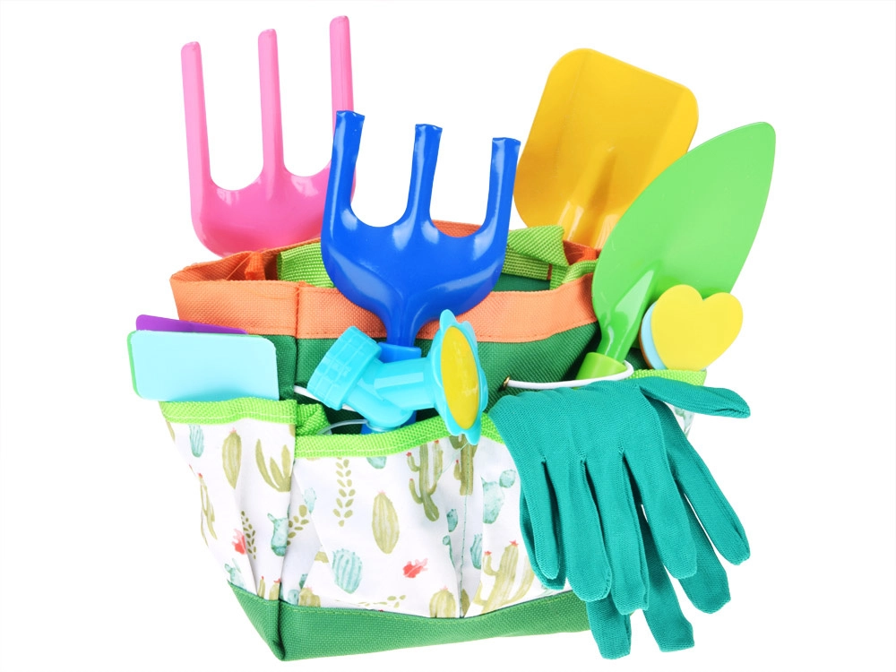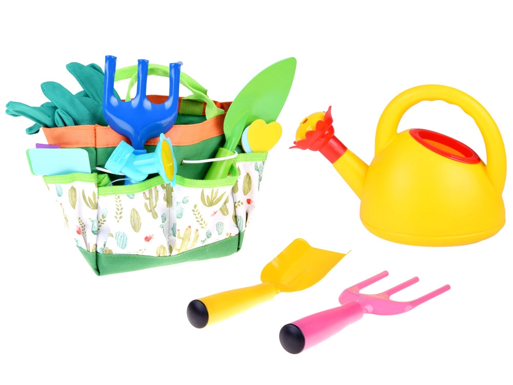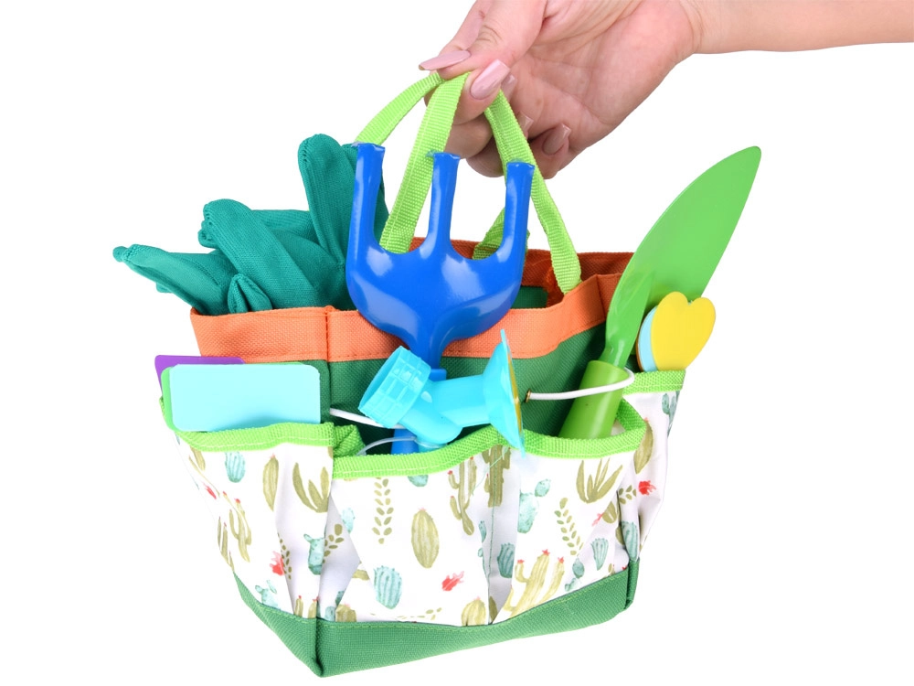 Kompletny dziecięcy zestaw ogrodniczy z wesołym motywem kaktusów zachęca dzieci do nauki i zabawy na świeżym powietrzu. Zawiera praktyczną torbę–organizer z kieszeniami, kolorowe narzędzia dopasowane do małych dłoni, konewkę, fartuch, rękawiczki, osłony oraz kolorowe znaczniki roślin. Idealny do kopania, spulchniania, przesadzania i podlewania oraz budowania relacji z naturą.