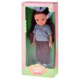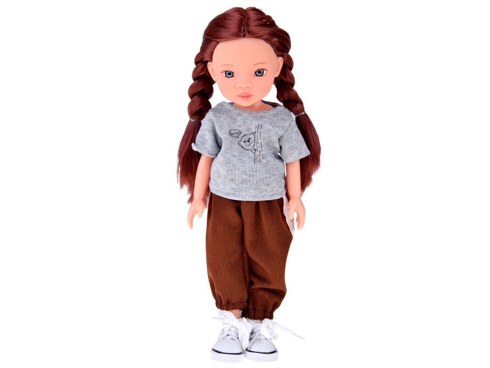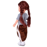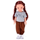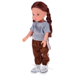 Lalka o wysokości ok. 33 cm wykonana jest z wysokiej jakości plastiku, a dzięki artykulowanym rękom, nogom i głowie można ją łatwo ustawiać. Długie, gęste satynowe włosy zachęcają do czesania, zaplatania i stylizowania. Swobodna szara koszulka z nadrukiem, brązowe spodnie dresowe z białymi lampasami oraz białe tenisówki dopełniają nowoczesny sportowy look.