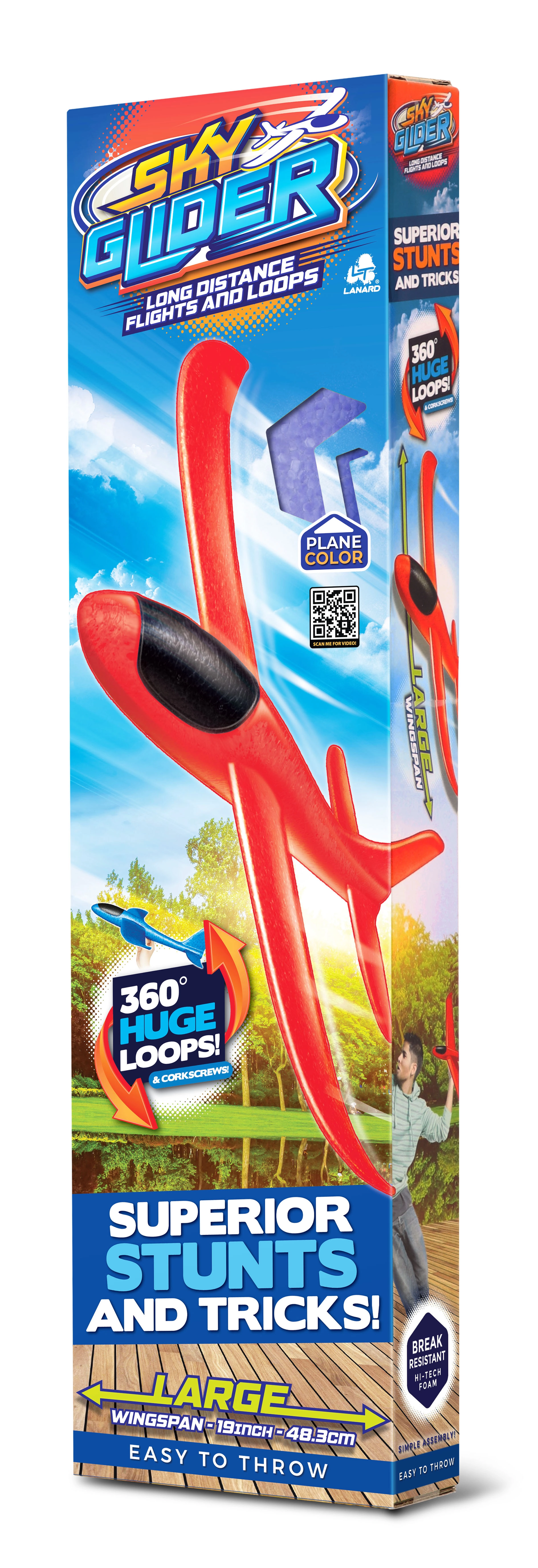 Lekki i wytrzymały model Sky Glider to idealne rzucane samolotem dla dzieci i dorosłych. Dzięki rozpiętości skrzydeł 48 cm oferuje stabilny lot, zasięg do 30 metrów oraz możliwość regulacji usterzenia dla lotu prostego lub pętli. Dostępny w dwóch wersjach kolorystycznych.