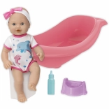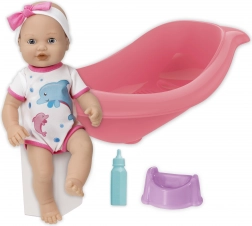 Urocza lalka z zestawem do kąpieli i przewijania ucieszy każde dziecko. W zestawie znajduje się wanienka o długości 41 cm, buteleczka i nocniczek. Lalka ma ruchomą głowę i kończyny, a po położeniu na plecach zamyka oczy. Dzięki funkcji siusiania po napojeniu z buteleczki dzieci mogą cieszyć się realistyczną zabawą w opiekę.