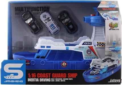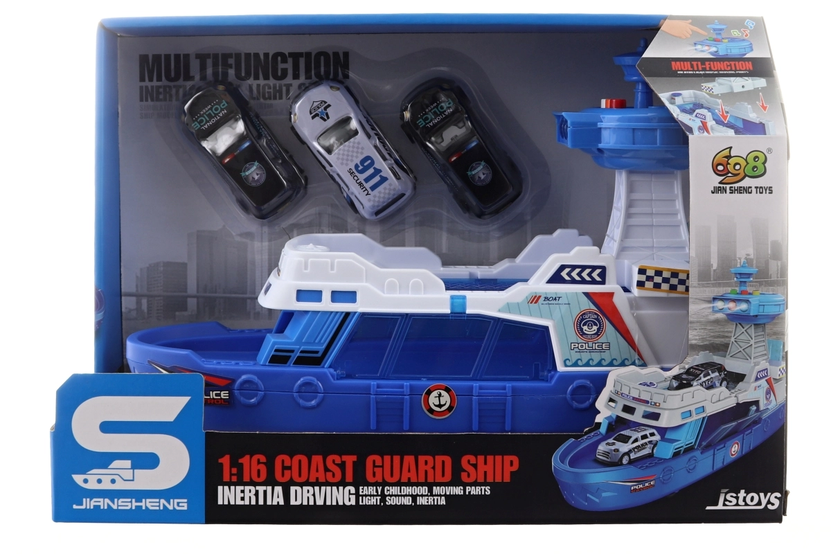 • Kompletny zestaw: łódź + 3 autka do różnych scenariuszy zabawy.