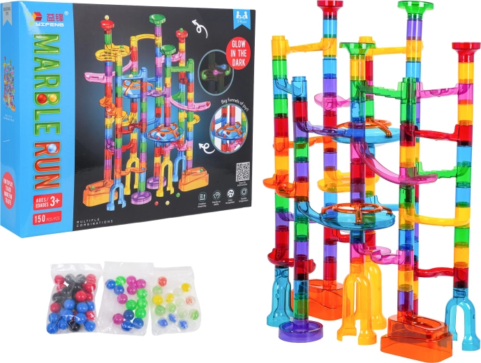 Zbuduj własny tor kulkowy i obserwuj, jak kulki pędzą w dół krętymi tunelami. Ten kolorowy zestaw z aż 150 elementami i kulkami świecącymi w ciemności oferuje godziny kreatywnej zabawy dla dzieci od 3 lat, rozwija małą motorykę, koordynację ręka–oko oraz wyobraźnię.