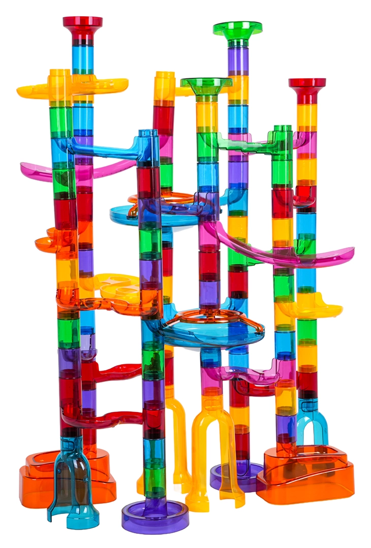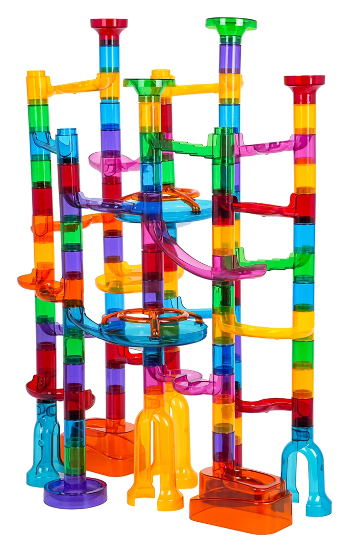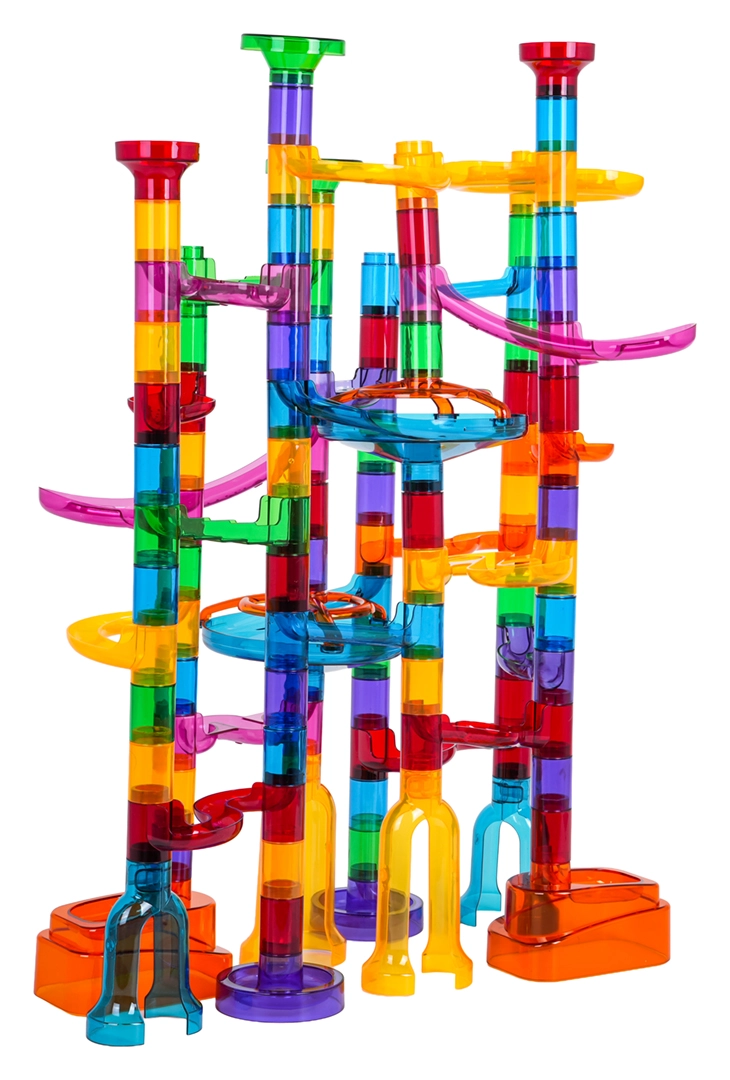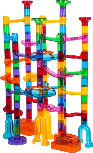 Wytrzymałe, przezroczyste komponenty w żywych kolorach zapewniają solidność całego toru i świetny efekt wizualny podczas jazdy kulek.