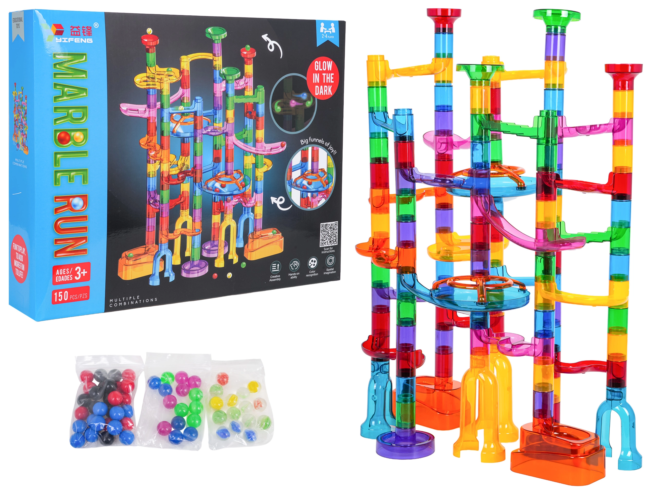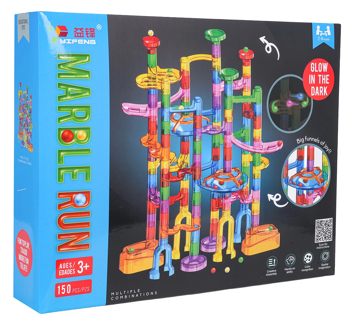 Zbuduj stabilną i barwną konstrukcję według własnej fantazji i pozwól kulkom pędzić przez spirale, zakręty i tunele. Świecące kulki zamienią zabawę w ciemności w magiczne przeżycie, a dzieci z radością będą testować nowe trasy i rekordy.