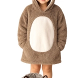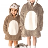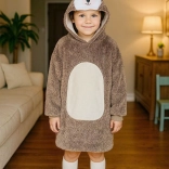 Praktyczny duży kaptur ze zwierzęcą buzią ogrzewa głowę i uszy, a pojemna przednia kieszeń trzyma dłonie w cieple i pomieści drobiazgi. Długość do kolan i luźny, oversize’owy krój zapewnią dzieciom przyjemne ciepło gdziekolwiek są.