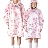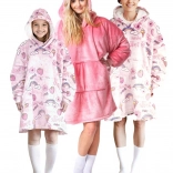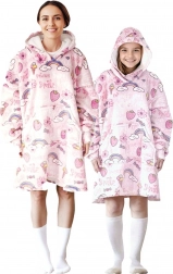 Praktyczne wykonanie uzupełnia duży kaptur i przestronna kieszeń kangurka na dłonie i drobiazgi. Figlarny różowy nadruk ze słodyczami ucieszy każde dziecko i sprawi, że koc-bluza będzie świetnym pomysłem na prezent.