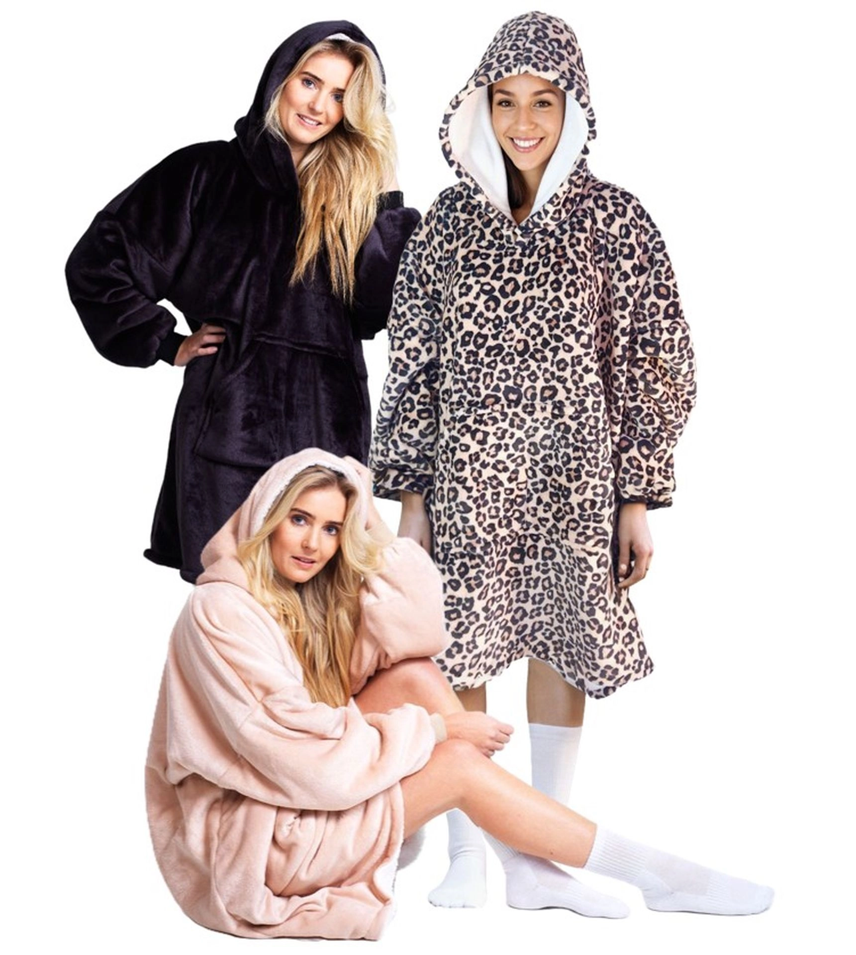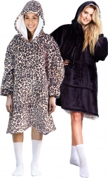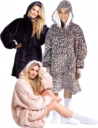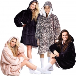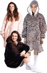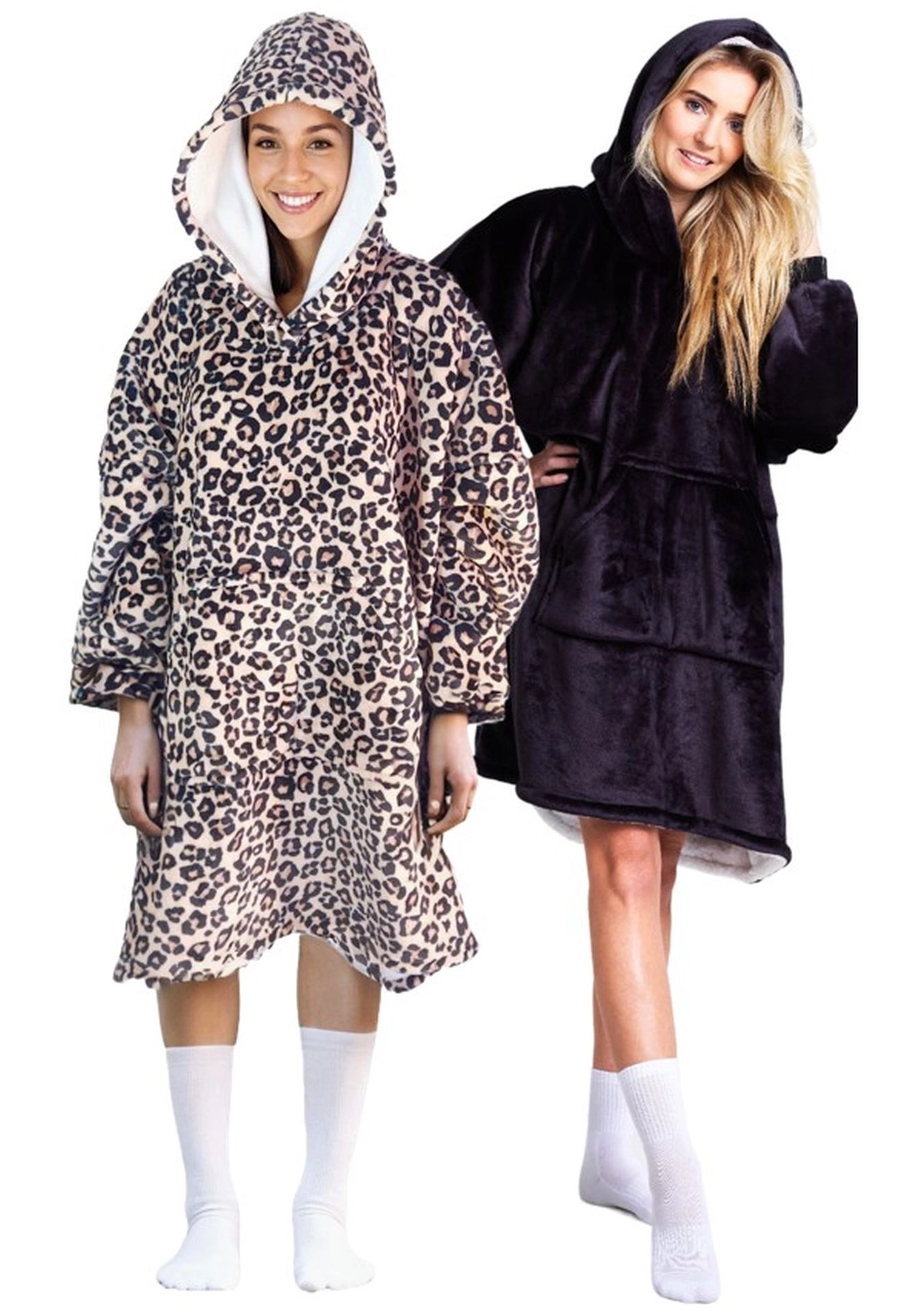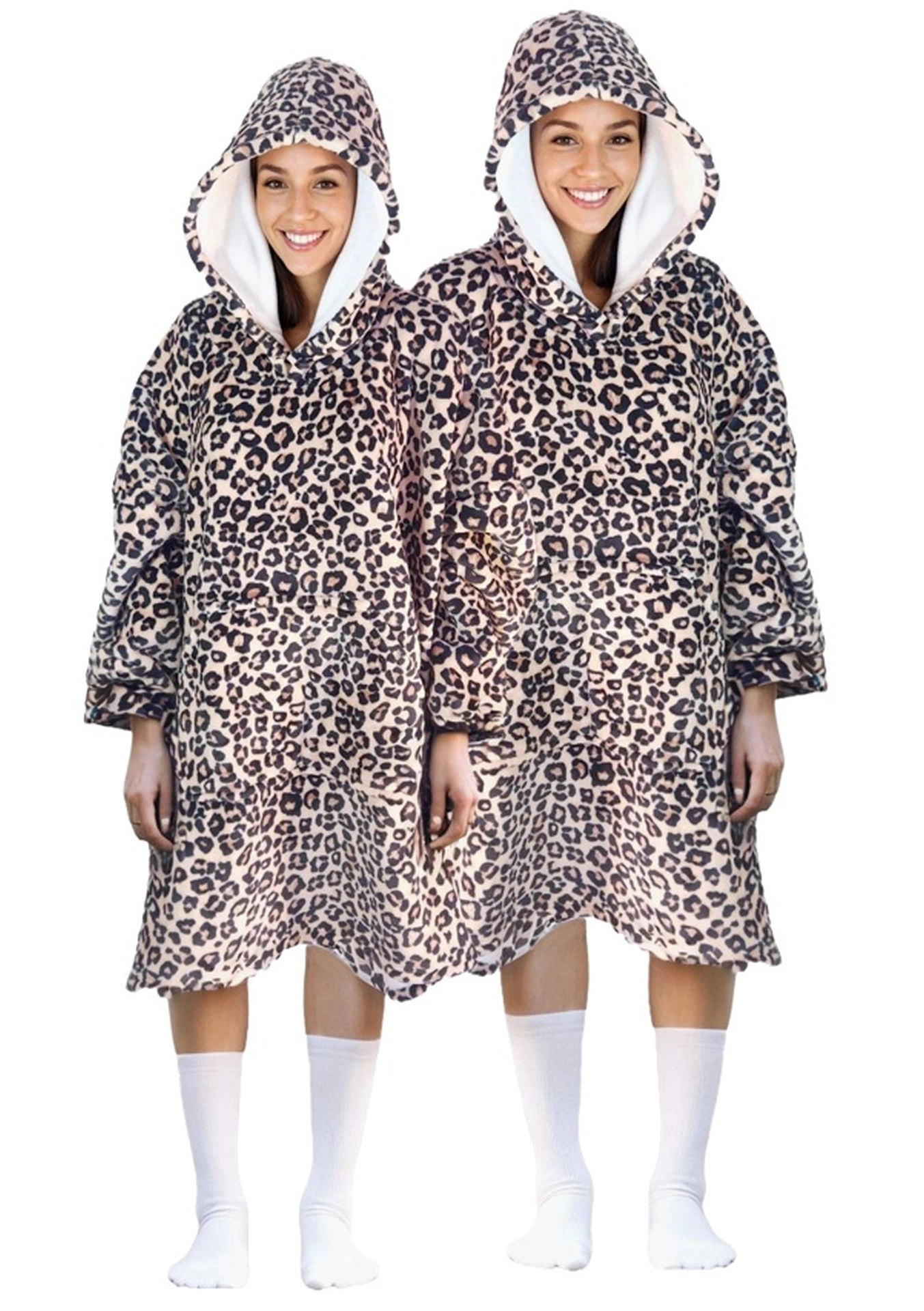 Otul się maksymalnym komfortem – ta oversize'owa kocobluza z kapturem łączy miękki flanel od zewnątrz i ciepły sherpa fleece wewnątrz. Dzięki ogromnej przedniej kieszeni, luźnemu krojowi i długości sięgającej kolan jest idealna do relaksu w domu, pracy przy komputerze oraz na posiedzenia na zewnątrz. Stylowy panterkowy wzór doda Twojemu chillowi charakteru.