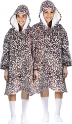- Styl i funkcjonalność: panterkowy nadruk, duży kaptur i pojemna kieszeń
