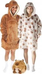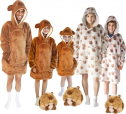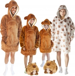 Ta kocobluza COZY NOXXIEZ z motywem kapibary jest idealna do leniuchowania na kanapie, czytania, pracy przy komputerze, biwakowania i spędzania czasu w ogrodzie w chłodniejsze dni. Oversize’owy krój nie krępuje ruchów i ogrzewa od ramion po kolana. To świetny prezent dla kobiet i mężczyzn, który zachwyca zabawnym designem i realną funkcjonalnością.