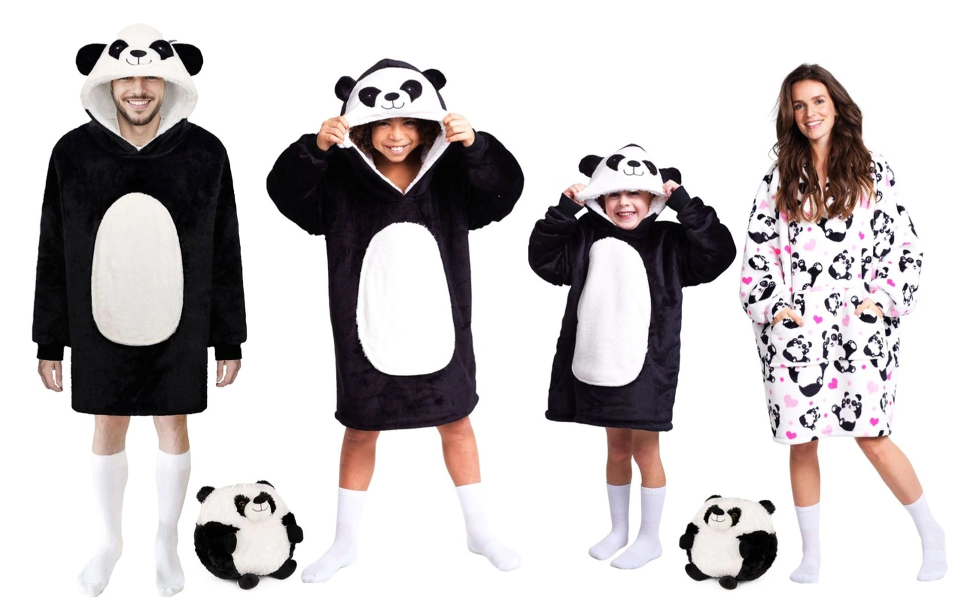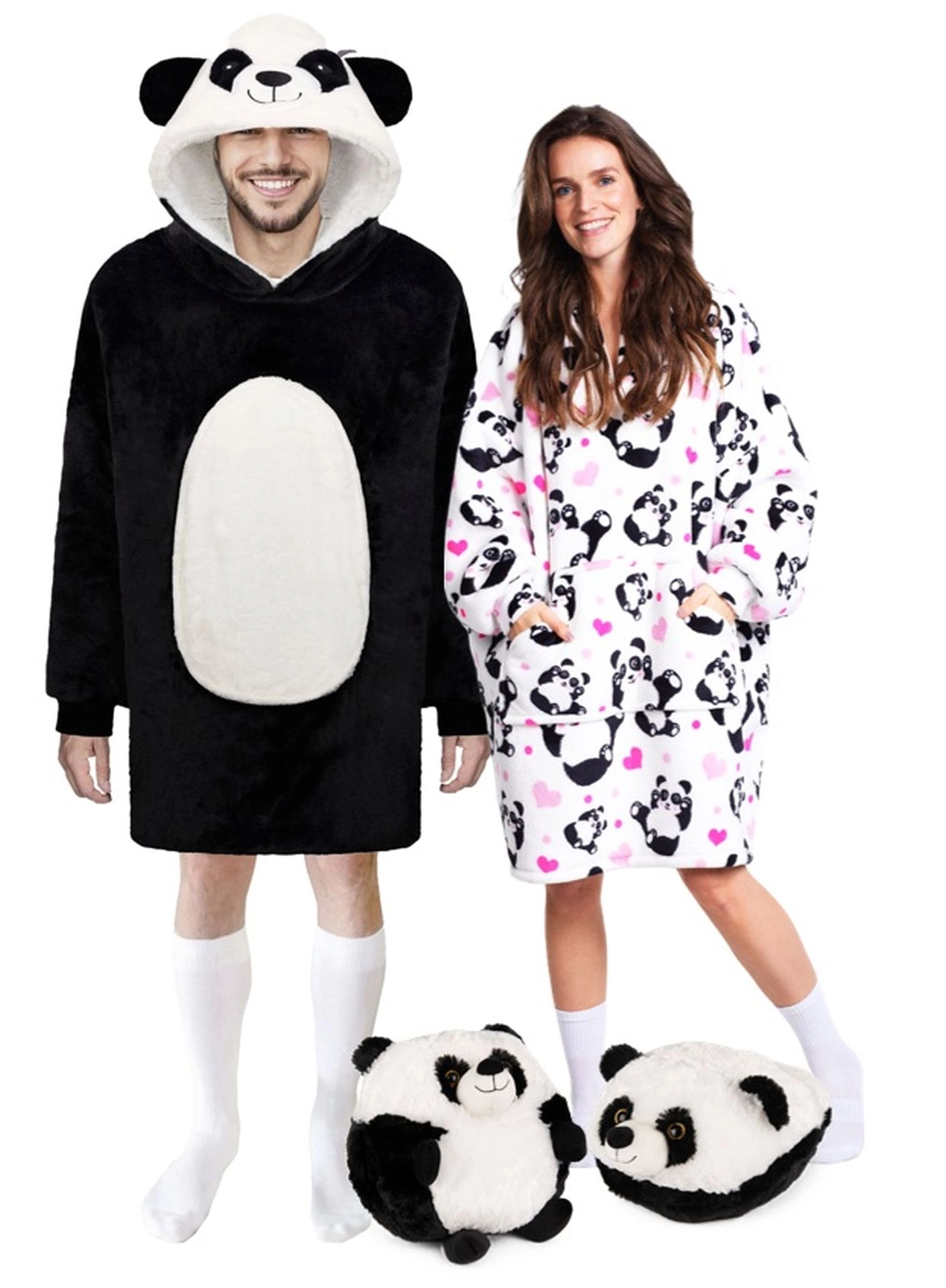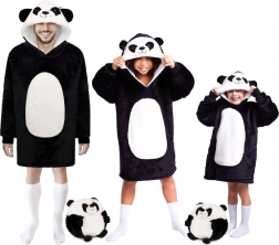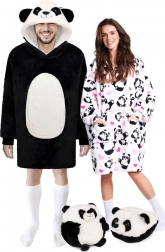 Ciesz się ciepłem i komfortem zawsze i wszędzie. Ta oversize’owa kocobluza w uroczym pandzim stylu doskonale ogrzewa przed telewizorem, podczas czytania, pracy przy komputerze czy relaksu w ogrodzie. Wnętrze stanowi puszysty polar sherpa, a zewnętrzną stronę aksamitnie miękki flanel – połączenie zapewniające natychmiastowe ciepło i maksymalną miękkość.