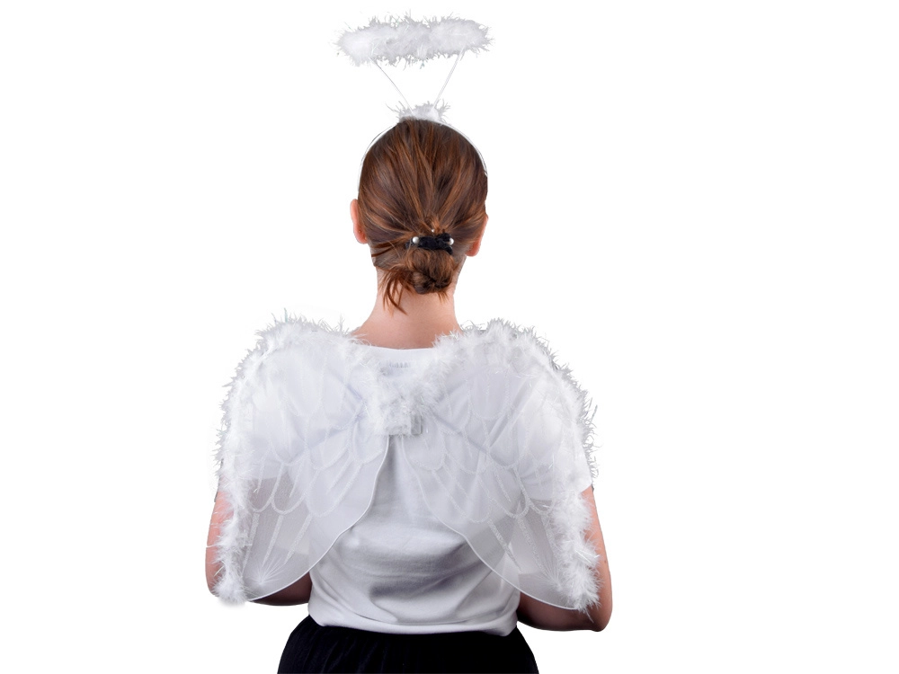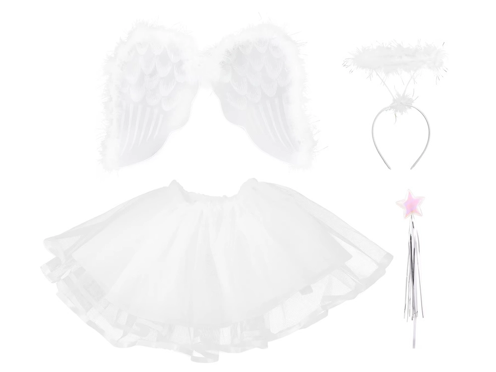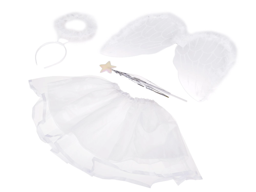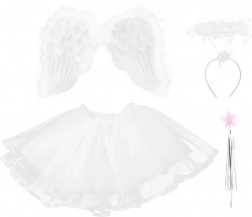 - Skrzydła, aureola na opasce, spódniczka tutu, magiczna różdżka