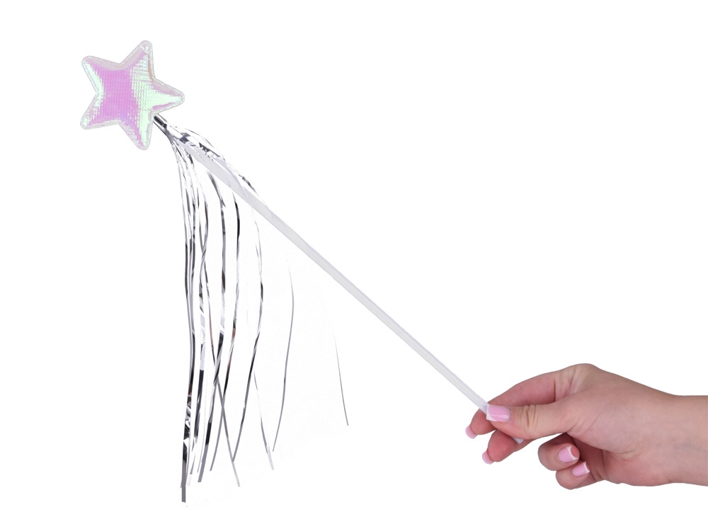 Miękka, puszysta aureola na opasce dopełnia niebiański wygląd. Różdżka z błyszczącą gwiazdką i srebrnymi frędzlami pobudza wyobraźnię podczas zabawy i występów.