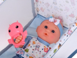 Spraw dzieciom radość realistycznym zestawem opieki nad niemowlęciem, który zawiera wszystko, czego potrzeba do codziennych rytuałów – od karmienia, przez spacer, aż po układanie do snu. Lalka ma ruchome kończyny, mięciutkie ubranko i siedzi w krzesełku oraz wózku. Wózek i łóżeczko mają lekką, składaną ramę, dzięki czemu łatwo je przenosić i szybko przechowywać.