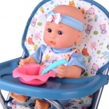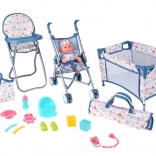 Zestaw dla lalki – lalka niemowlę z wózkiem, łóżeczkiem, krzesełkiem i akcesoriami