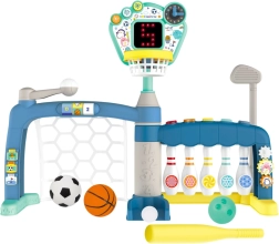 Wielofunkcyjny zestaw sportowy 5w1 to nowoczesna zabawka, która dostarcza dzieciom mnóstwo ruchu i radości. Dziecko może spróbować pięciu dyscyplin – piłki nożnej, koszykówki, kręgli, golfa i baseballu – i odkrywać swoje sportowe talenty. Interaktywna tablica LED z punktacją i dźwiękami śledzi postępy i motywuje do kolejnych sukcesów, a regulowany kosz pozwala dopasować zabawę do wieku i wzrostu dziecka.