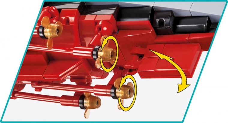 Obrotowe wieże artyleryjskie, regulowane działa oraz bogato wyposażony pokład z łodziami, masztami i łańcuchami zapewniają realistyczny wygląd i przyjemną interakcję po zakończeniu budowy.