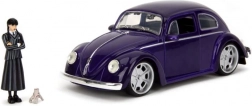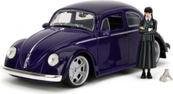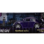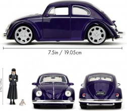 Stylowy kolekcjonerski model 1972 VW Beetle w skali 1:24 zachwyca precyzyjnym wykonaniem, otwieranymi drzwiami i toczącymi się kołami. W zestawie znajduje się figurka Wednesday Addams, która uatrakcyjni ekspozycję lub zabawę. Długość modelu to ok. 19 cm.