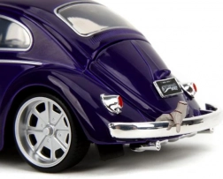 Odkryj ikoniczny wygląd klasycznego Beetla w wysokiej jakości metalowym wykonaniu, które ucieszy kolekcjonerów i fanów popkultury. Ten szczegółowy model oferuje realistyczne proporcje, chromowane elementy i czyste linie nadwozia w efektownym fioletowym wydaniu.