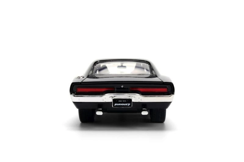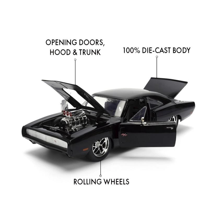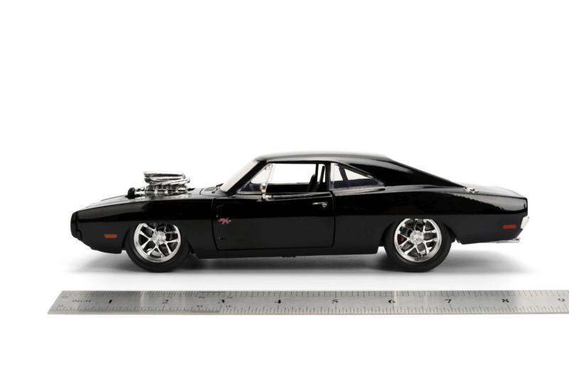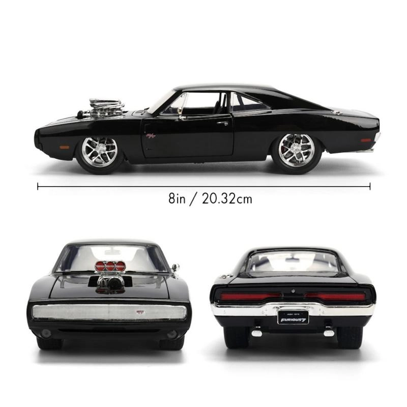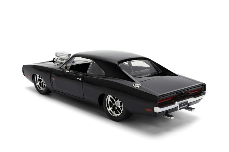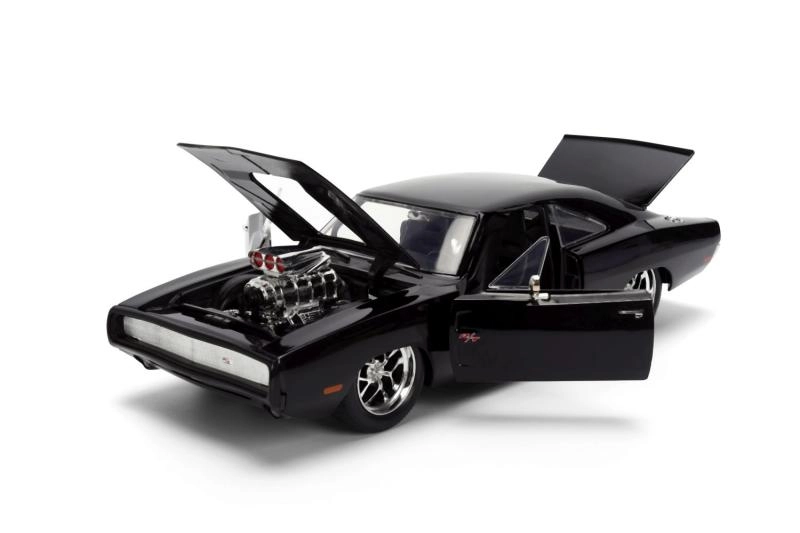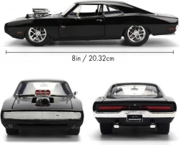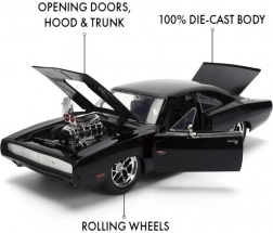 Ikoniczny kolekcjonerski model 1970 DODGE CHARGER z filmu Szybcy i wściekli w skali 1:24 zachwyci fanów muscle carów i serii filmowej. Oferuje metalowe wykonanie, otwierane drzwi, maskę i bagażnik oraz realistyczne detale, w tym wyrazisty kompresor na masce. Długość modelu to około 21 cm.