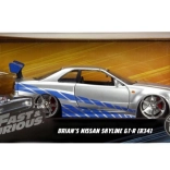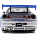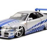 Dodaj do swojej gabloty legendę japońskiej sceny – szczegółowo opracowany Nissan Skyline GT‑R R34 inspirowany filmem Szybcy i wściekli. Model łączy solidne metalowe nadwozie z precyzyjnymi plastikowymi dodatkami, niebieskimi wyścigowymi pasami i wiernym bodykitem.