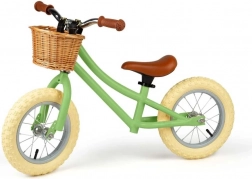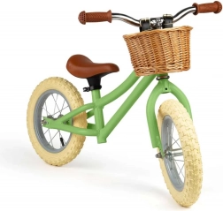 Stylowy rower biegowy w delikatnym zielonym kolorze pomaga dzieciom naturalnie rozwijać równowagę i pewność podczas jazdy. Dzięki wytrzymałej metalowej ramie, oponom pneumatycznym, regulowanemu wysokością siodełku oraz praktycznemu wiklinowemu koszykowi jest idealny na pierwsze doświadczenia z jazdą bez pedałów. Spełnia europejskie normy bezpieczeństwa i jest wykończony nietoksycznymi farbami.