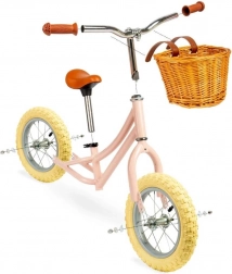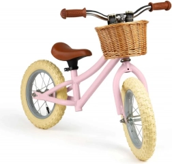W zestawie znajduje się wiklinowy koszyk na ulubione zabawki oraz arkusz naklejek do personalizacji. Rowerek wykonano z najwyższej jakości materiałów, wykończono nietoksycznymi farbami i lakierami oraz dostosowano do aktualnych europejskich norm bezpieczeństwa.