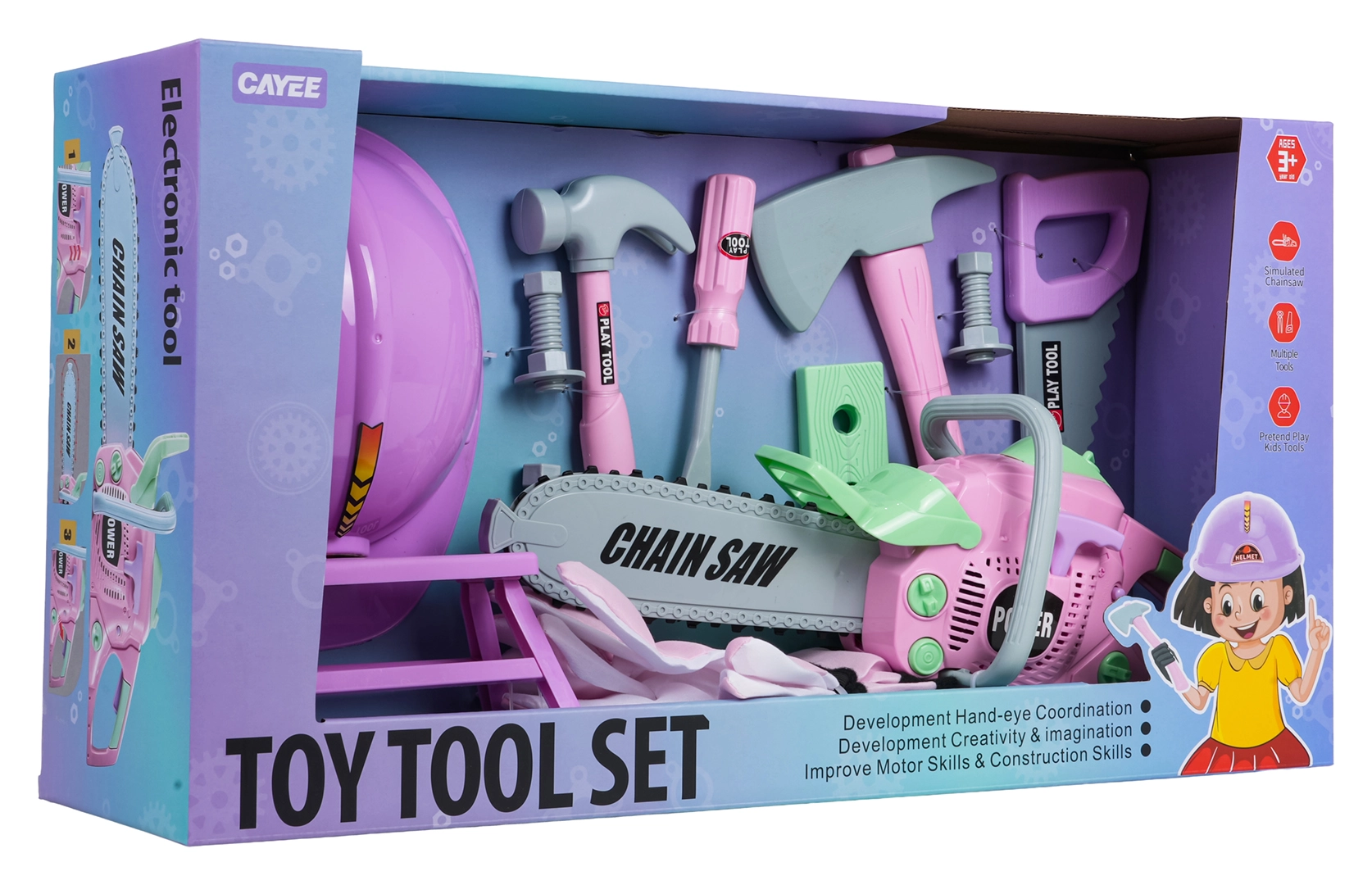 Ten kreatywny zestaw wspiera zabawy w odgrywanie ról i rozwój motoryki małej. Dzieci mogą naśladować dorosłych przy naprawach i budowaniu, uczyć się podstaw pracy z narzędziami i rozwijać wyobraźnię. Piła łańcuchowa jest zasilana 3× AA 1,5 V (brak w opakowaniu) i oferuje dźwięk rozruchu oraz pracy.