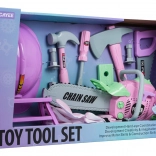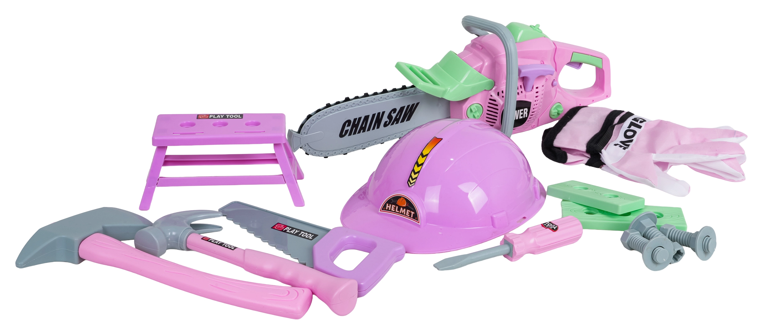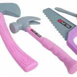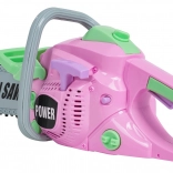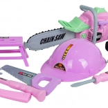 Różowy zestaw narzędzi do zabawy dla dzieci od 3 lat ucieszy małych majsterkowiczów bogatym wyposażeniem. Zawiera piłę łańcuchową z efektami dźwiękowymi, kask ochronny i rękawice, młotek, piłę, śrubokręt, śrubki oraz stolik – mini warsztat. Wykonany z wysokiej jakości plastiku, bezpieczny i lekki dla dziecięcych rąk.