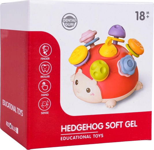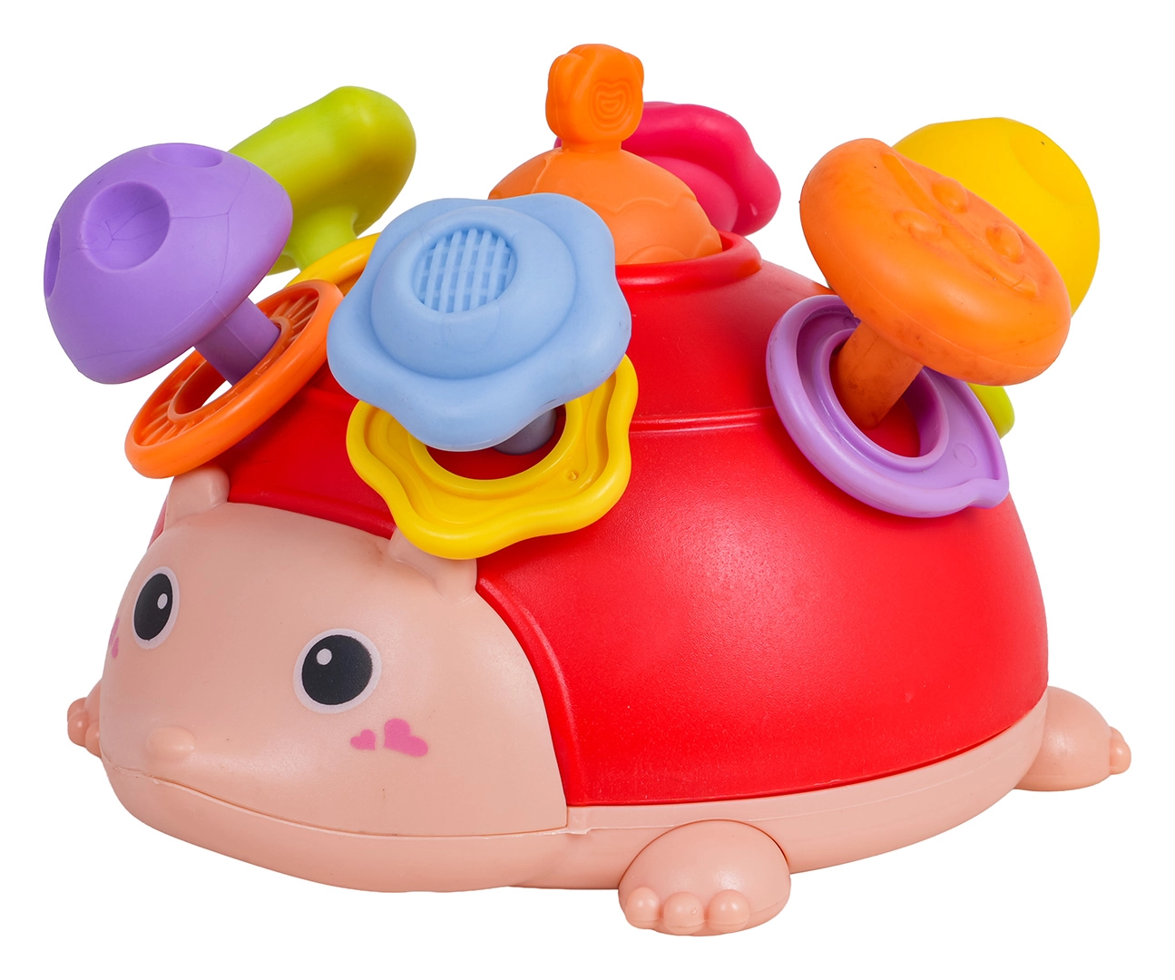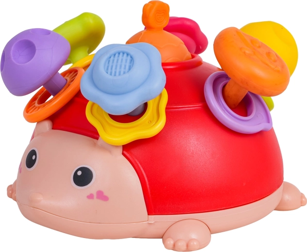 Uroczy jeżyk sensoryczny dla dzieci od 18 miesięcy rozwija małą motorykę, percepcję sensoryczną oraz koordynację. Ma miękkie wypustki pomocne przy ząbkowaniu, kolorowe kółka z grzechotką, przycisk do wciskania i ciągnięcia, gumki przy rączkach i nóżkach dla bezpiecznego ciągnięcia oraz spinner na spodzie do niekończącego się kręcenia. Wykonany z bezpiecznych materiałów bez ostrych krawędzi, w żywych kolorach, które naturalnie zachęcają dzieci do zabawy.