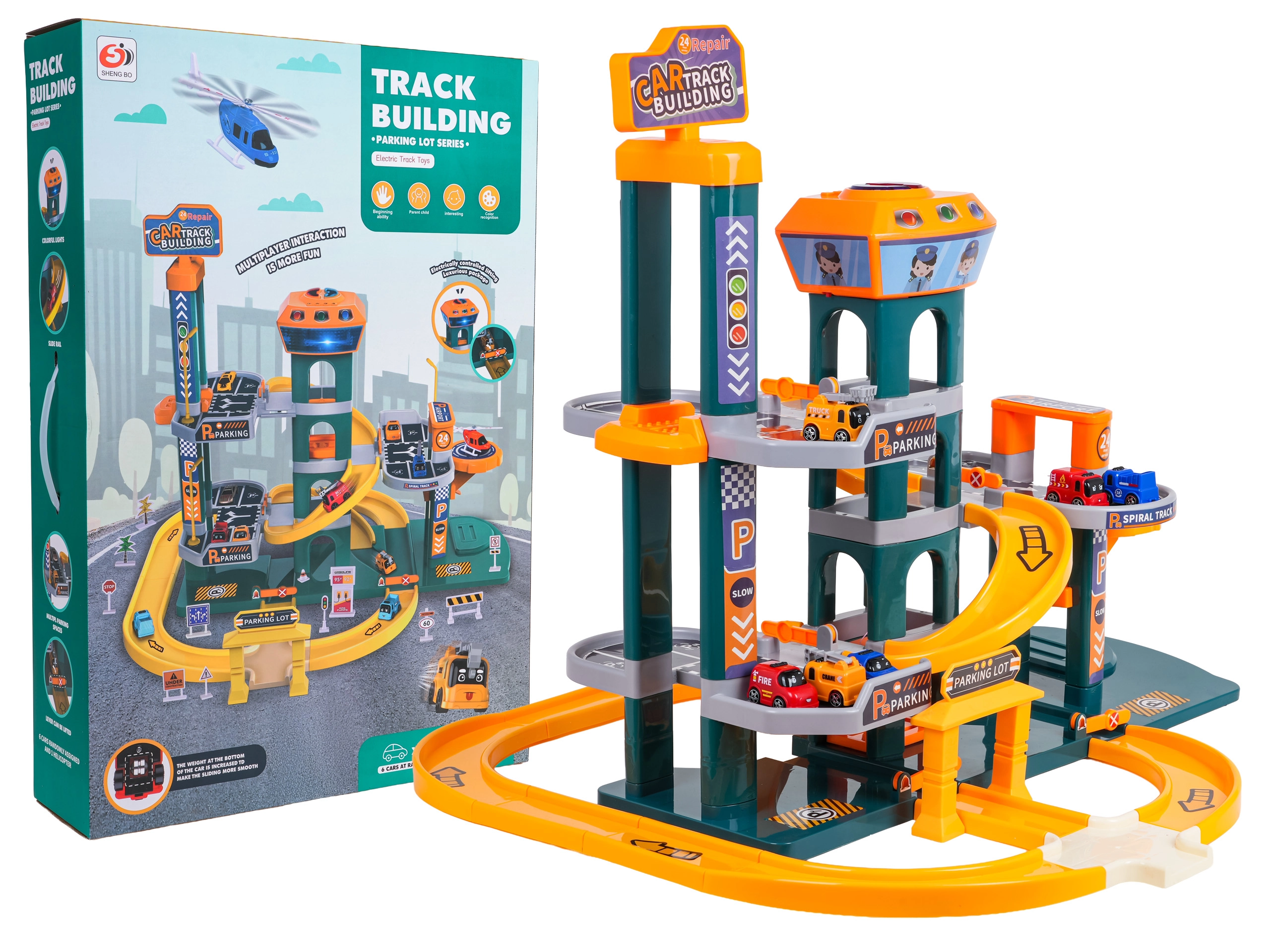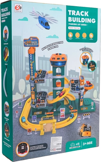 Odkryj duży, dwupoziomowy parking dla dzieci od 3 lat z efektami świetlnymi i dźwiękowymi, automatyczną windą oraz bogatym wyposażeniem. Kolorowy zestaw z wysokiej jakości, bezpiecznego plastiku oferuje spiralne zjazdy, panel sterowania z wesołymi melodiami, dźwiękami pojazdów i migającymi przyciskami, a także 6 autek i helikopter dla godzin twórczej zabawy.