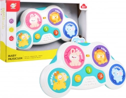Ta muzyczna zabawka z dotykowymi polami ze zwierzątkami (królik, lew, żyrafa i słoń) zachęca dzieci do odkrywania dźwięków i rytmu. Delikatne efekty świetlne na całej długości panelu oraz żywe kolory wspierają percepcję wzrokową, a dźwięki i melodie rozwijają słuch oraz poczucie rytmu.